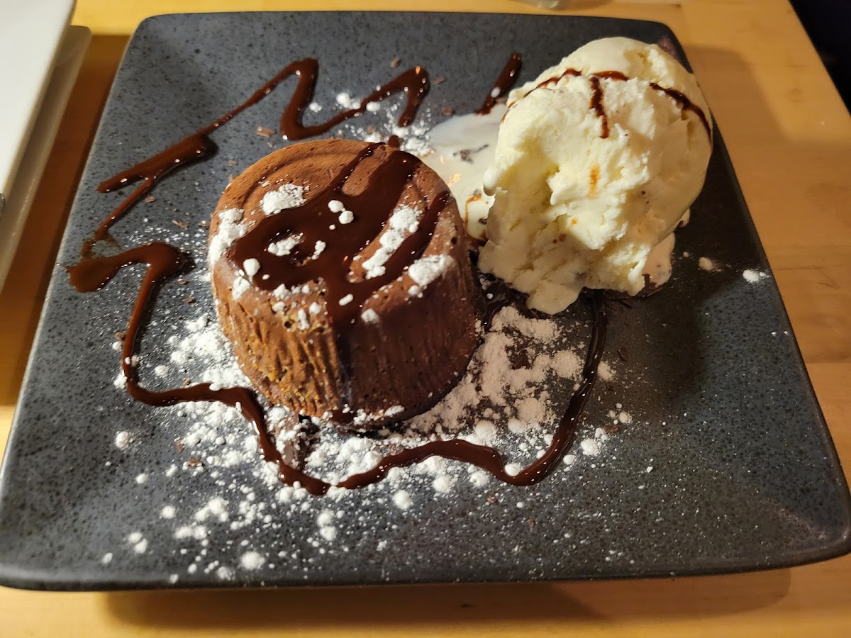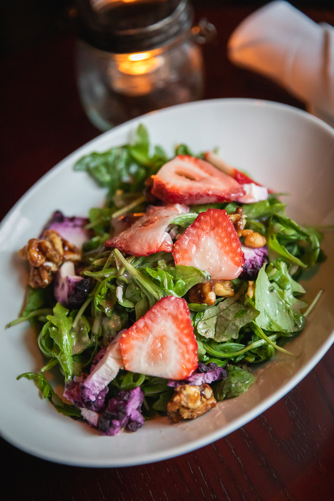 Cozy cute place. The signature calamari and the tavern salad was delicious. The butchers steak was cooked to perfection, however the marinade was a little on the sweet side for me. Service was excellent. Wish I had room for dessert.