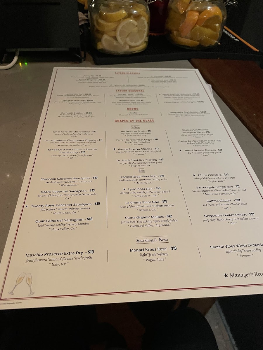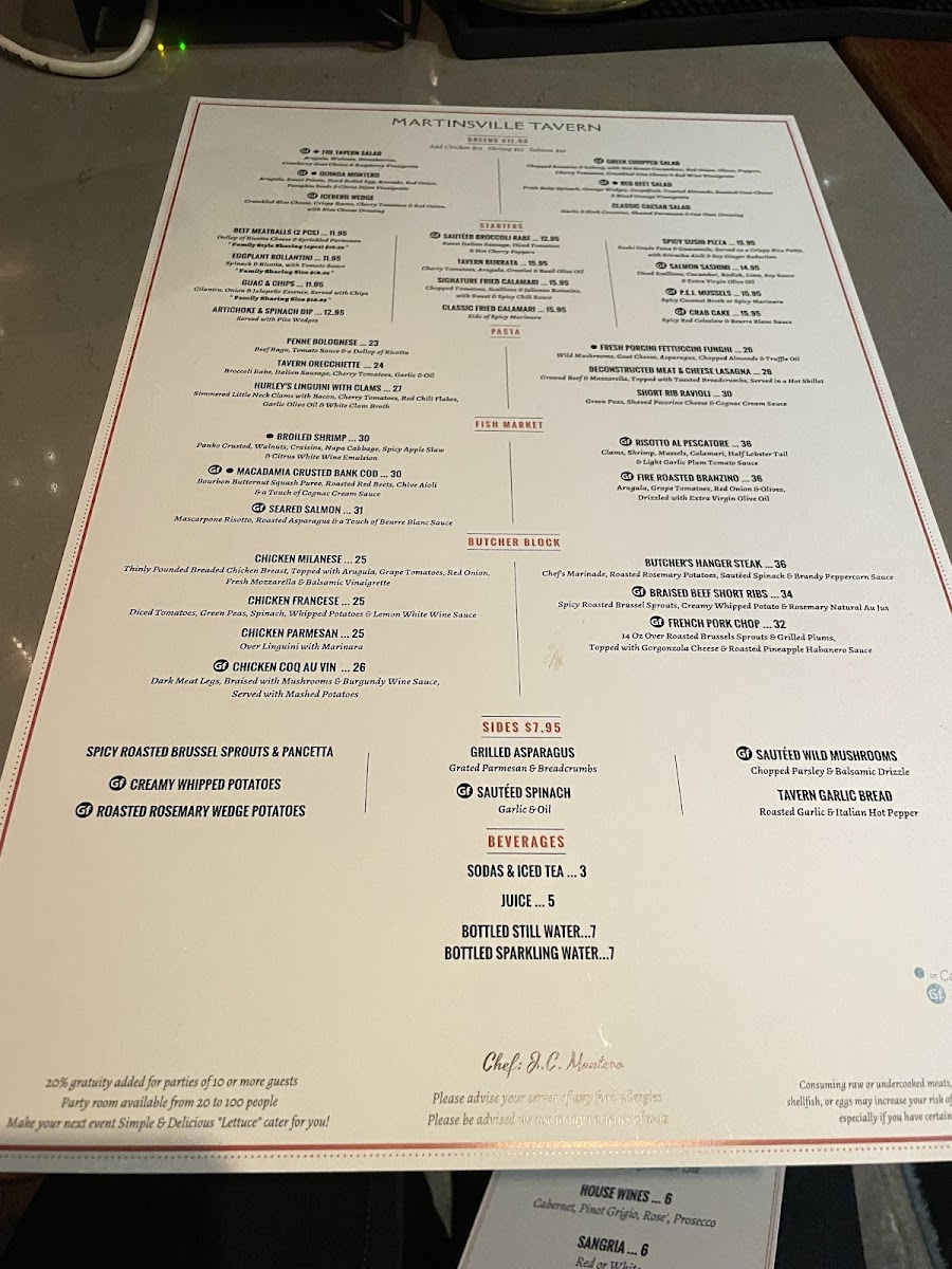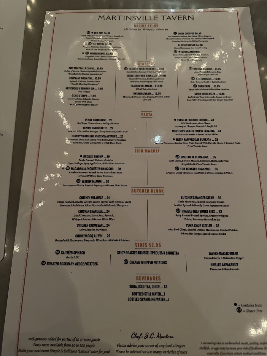 Martinsville Tavern Menu