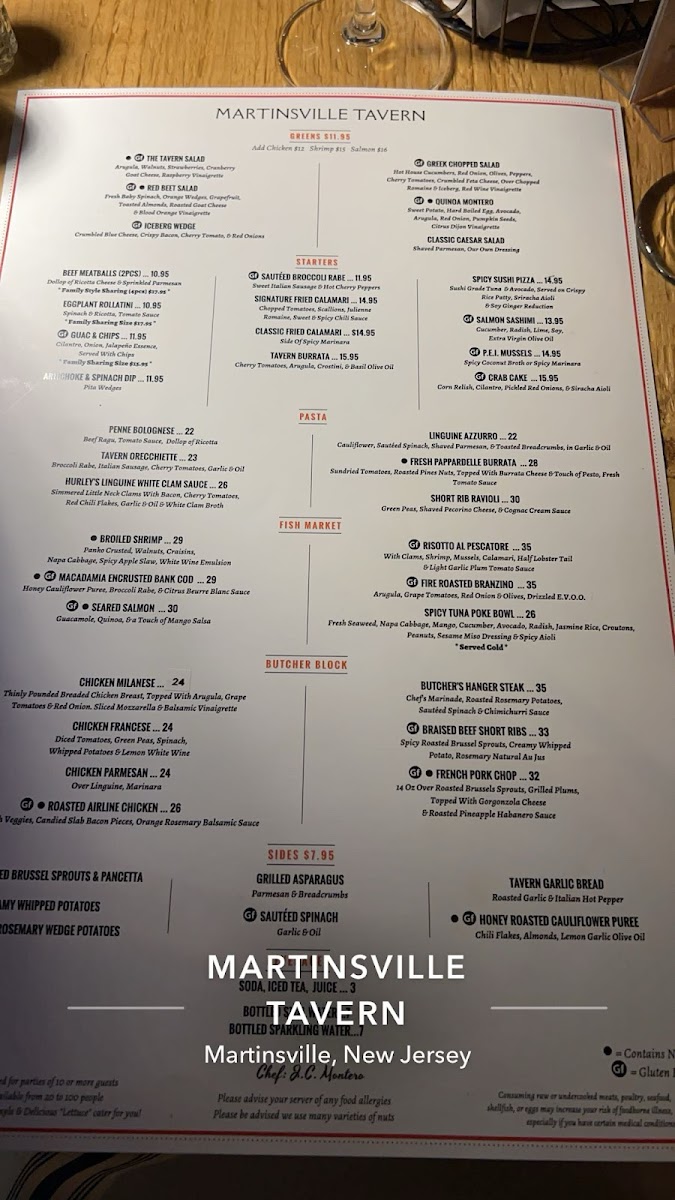 The menu at Martinsville Tavern offers a thoughtfully curated selection that blends classic American comfort with contemporary flavors, perfect for a relaxed meal or an evening out. You’ll find a balance between hearty dishes like the Tavern Burger with caramelized onions and white cheddar, and refined plates such as Chicken Coq Au Vin or the Prime Rib served on Sundays. This range makes it easy to enjoy casual bites or more substantial meals that complement the warm, inviting atmosphere of the tavern.